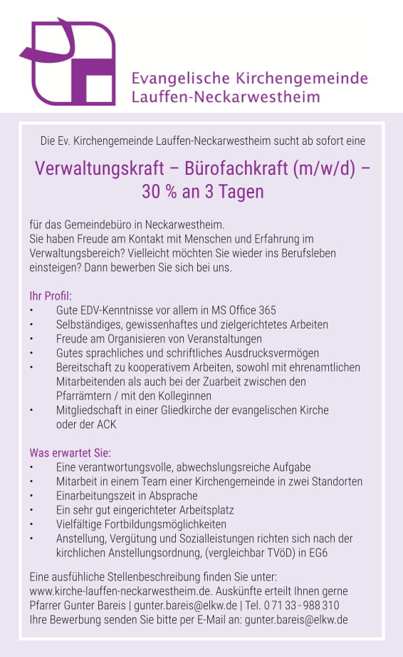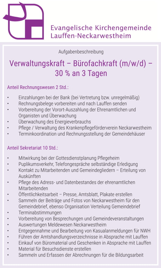Die Ev. Kirchengemeinde Lauffen-Neckarwestheim sucht: